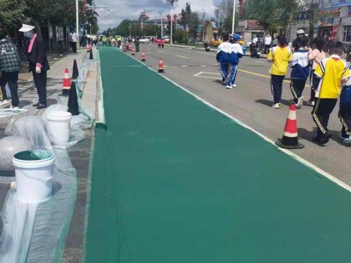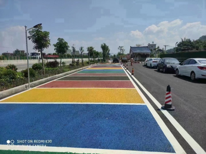 在颜色选择方面,沥青改色路面的颜色设计需要考虑到功能性和美观性。功能性主要体现在通过颜色区分不同的道路区域和交通流线,如行车道、非机动车道、人行道等,以提高交通效率。美观性则体现在通过色彩的搭配和运用,营造出独特的城市风貌和景观效果。同时,颜色的选择还需要符合的有关规定和标准,避免对驾驶员的视线和判断造成干扰。